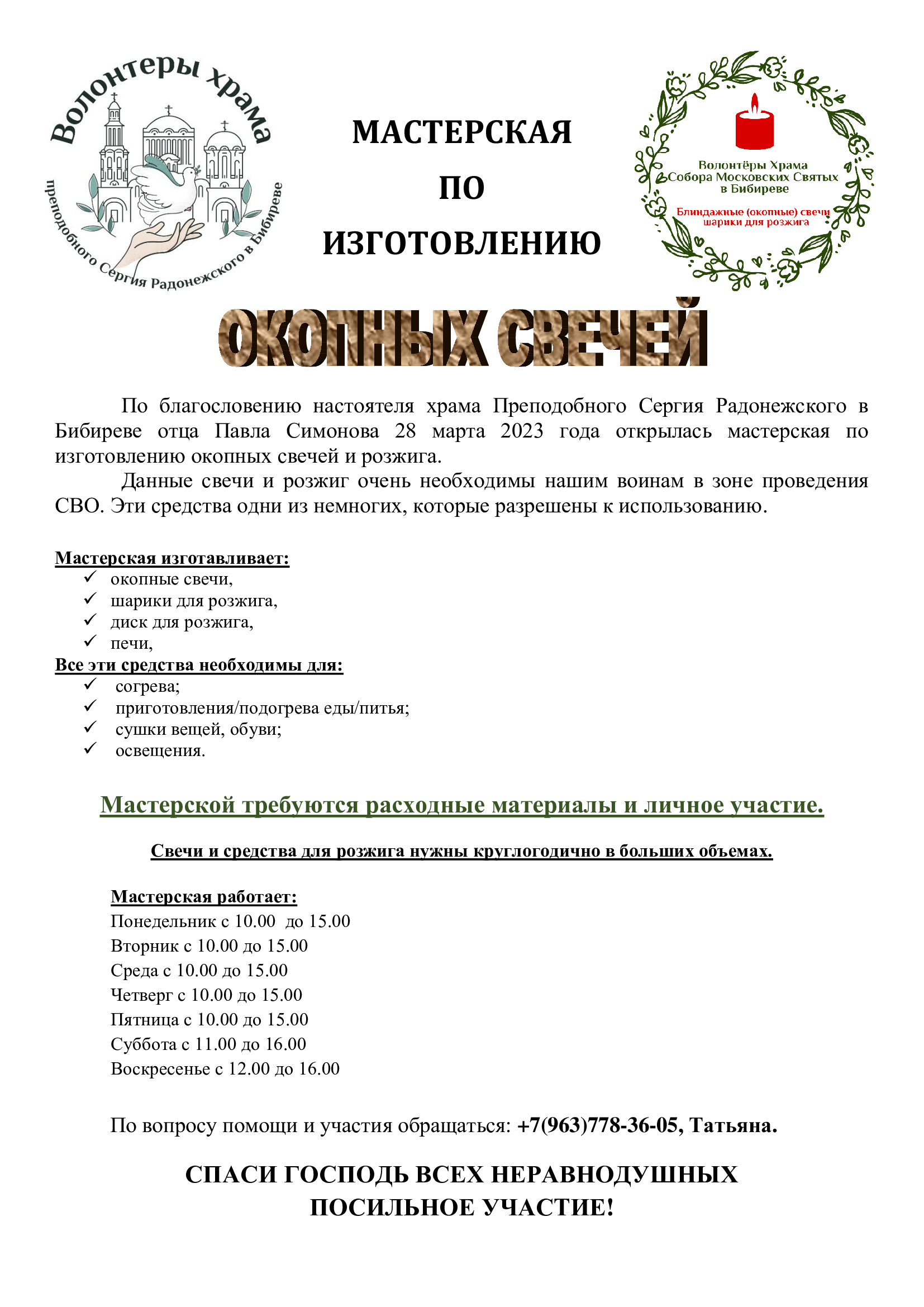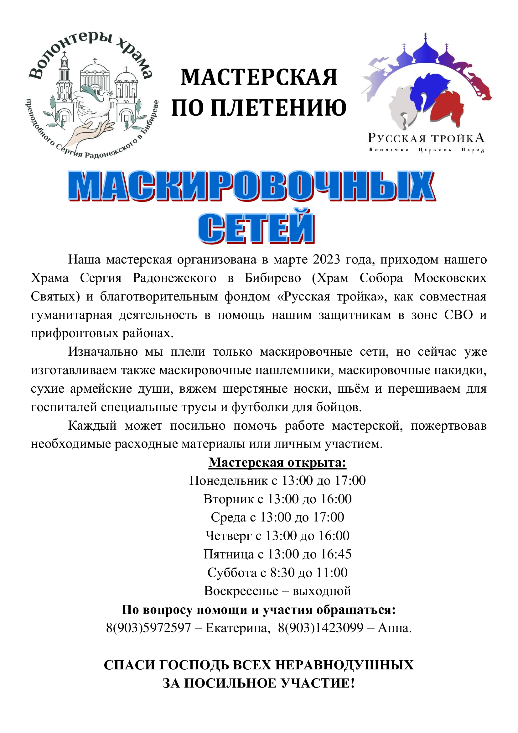 Приглашаем принять участие в изготовлении маскировочных сетей и окопных свечей