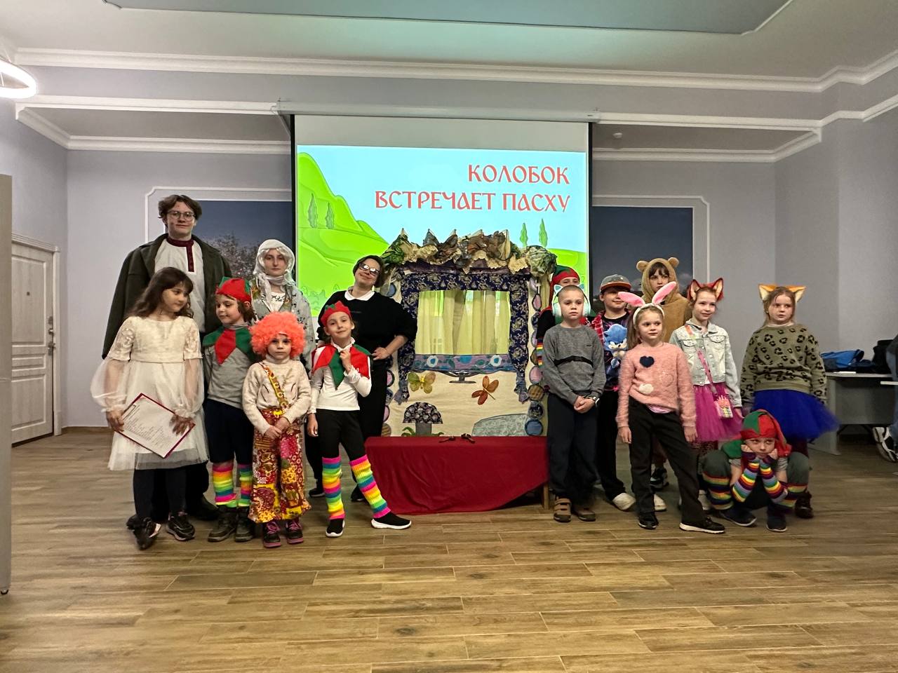 Кульминацией вечера стала постановка увлекательной пасхальной сказки «Колобок встречает Пасху». Эта театральная история ярко продемонстрировала главную идею праздника — необходимость совершать добрые поступки ради других. Во время постановки задействованы были все воспитанники ВШ в хороводе и перетягивании каната. Главный герой «Колобок» подружился со всеми, кто встречался ему на пути, рассказал, показал и научил всех, где и как встречают праздник Пасхи, что его встречают, не лёжа на диване, не развлекаясь под музыку, а совершая добрые дела. Вот это настоящая, волшебная, и православная сказка!