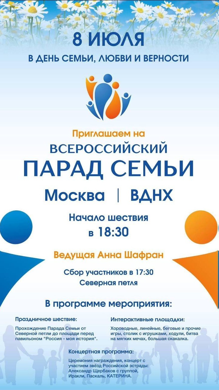 Всероссийский парад семьи. 8 июля, ВДНХ, 18:30.
