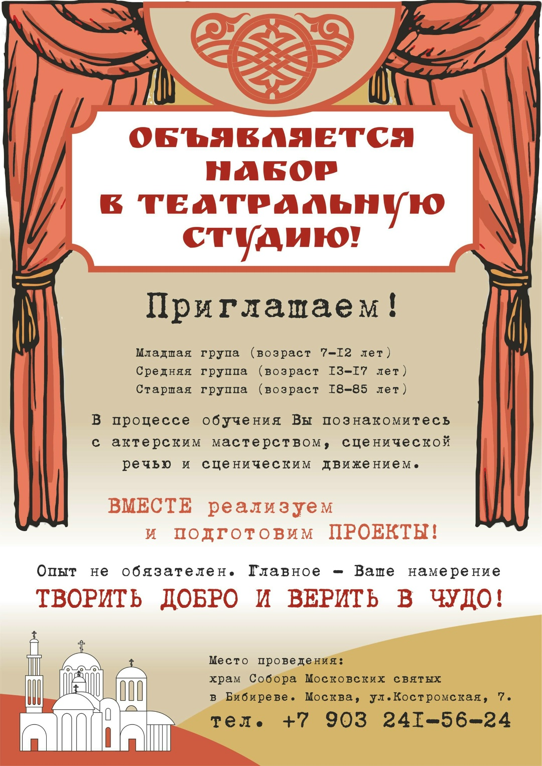 Объявляется набор в театральную студию при храме Собора Московских Святых в Бибиреве.